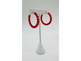 Make a bold statement with these vibrant red beaded hoop earrings.