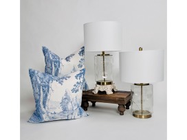 Discover the charm of these two toile print pillows, featuring intricate scenes of nature and leisure in a timeless blue on white design. The detailed artwork on each pillow evokes a sense of calm storytelling, perfect for adding an artistic and classic touch to any space.