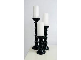 Nothing tops a mantle like the traditional candlestick, and this trio is no exception. Painted deep black, these curvaceous mango wood holders hold 4" candles.