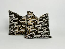 Craft an ambiance of sophisticated charm with this set of pillows, each featuring a complex labyrinthine pattern in contrasting black and gold. The interlocking geometric design adds a modern, upscale touch to your decor, while the plush fabric ensures comfort. Ideal for a contemporary space, these pillows can serve as a bold focal point or complement other luxurious accents.