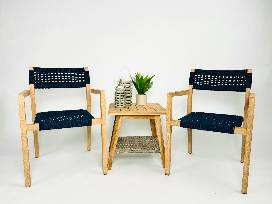 The chairs are made with sustainable, plantation-grown eucalyptus hardwood and premium double-spun UV-stabilized polyester fiber with inner nylon cord reinforcement for strength and lasting durability in all climates. The unique blue rope is made for outdoor use and is abrasion resistant with an impressive style woven around a solid eucalyptus frame.
