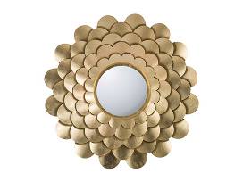 This piece features a small mirror surrounded by layers of pretty petals in a satin gold finish.