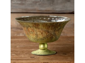 This classic compote really displays the brilliance of mercury glass and etched details that are artfully aged for a time worn appeal.