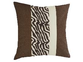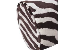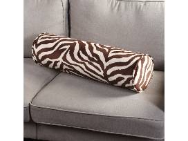 Stylish cylindrical bolster pillow adorned with a zebra stripe pattern in rich brown and cream tones. This plush accessory adds an exotic touch to any room, perfect for accentuating sofas, beds, or chairs. Offers both comfort and a striking decorative element with its bold animal print.