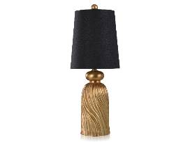 Discover this exquisite table lamp, boasting a base sculpted to mimic the elegant folds of a tassel, finished in a golden hue for a touch of opulence. The lamp is crowned with a sophisticated black shade that contrasts beautifully with its lustrous base. A timeless piece that adds a luxurious and artistic flair to any interior.