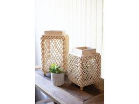 These woven lanterns with glass inserts are the perfect addition to your end table or bookcase. You can place them on a high shelf or your kitchen counter, wherever you need a varied look or a little bit of light.