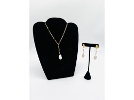 Lariat Chain Necklace Plated in 18K Gold with Baroque Pearl. Made in Brazil.