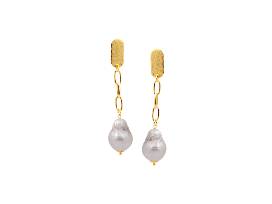 Gold chain drop earrings plated in 18k gold with baroque pearl. Made in Brazil.