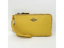 Coach New York soft Yellow pebble leather double corner zip wristlet
