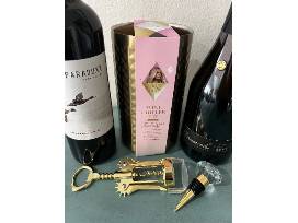 - Paris Hilton Wine Bottle Chiller Set, Insulated Double Wall Chiller, Gold Winged Corkscrew Wine Bottle Opener, Diamond Wine Stopper, 3-Piece Set, Gold