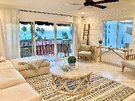 Enjoy sweeping views of the Pacific Ocean and the San Clemente pier in a two bedroom, two bath condo just blocks from the San Clemente pier and restaurants. Sleeps six. Walk to the beach and enjoy the sun, surf and sand!
