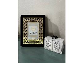 Get your bougie decor on with this beautiful Kendra Scott Filigree photo frame in a bright brass metal finish (4x6 frame) and a set of Diptyque Bougie Parfume candles (set of 2).