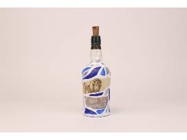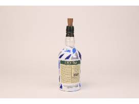 This hand-painted bourbon bottle has hues of blue, silver and white. When you place the top on, the bottle lights up. Painted by artist June McCreary.