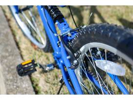 Kick up some dirt with this Dual Suspension Mountain Bike by Volkswagen! This 18-speed bike is adult-sized with 26" wheels. The winning bidder will need to pick this item up at the CASA of Lexington office starting 2/26/24.