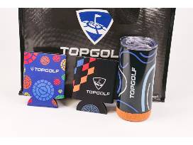 Love Topgolf? Enjoy this Topgolf gift bag! Includes a $50 off game play certificate that expires 3/31/24, two Topgolf branded 16 oz. Stainless steel tumblers, two Topgolf koozies, and a Topgolf 60 in. x 50 in. blanket - all in a Topgolf tote! Topgolf has a location in Louisville, Kentucky.