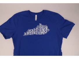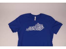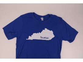 Show your KY pride with two, blue, short-sleeve Bella + Canvas t-shirts, sizes small and large, from PJ's Distinctive Gifts! The small shirt features the state of Kentucky with the word "home" and the large shirt features the state of Kentucky with the word "Kentucky."