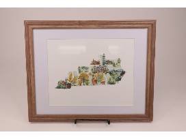 This beautiful 16 in. x 20 in. framed print is the perfect addition for any Kentucky home! This print from Wild Joy Studios features iconic Kentucky themed images within the shape of this beloved state.