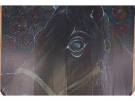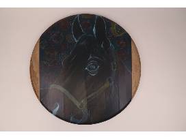 0The perfect Kentucky or horse lover decoration. Take home this vinyl-decorated barrel head featuring a horse and rose background with two matching bottles. All items were designed and made by Denise Brown.