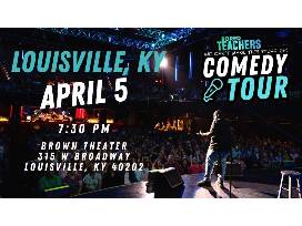 0This voucher entitles you to two tickets for "Bored Teachers: We Can't Make This Stuff Up" at Kentucky Performing Arts in Louisville. The performance is on Friday 4/5/24 at Brown Theater at 7:30 PM. Bored Teachers Studios presents the funniest teacher-comedians in the world, all on one stage. This is a night of laughter you don't want to miss! This is not a ticket; redeem voucher by completing and returning to Leslie Wilson at least two weeks prior to the performance. Vouchers submitted later are subject to availability. PG-13 language.