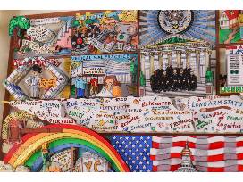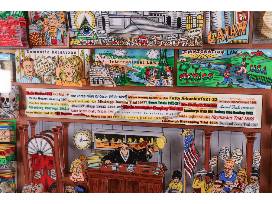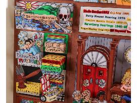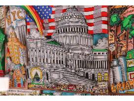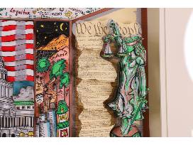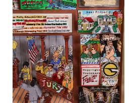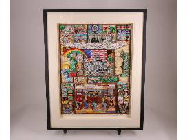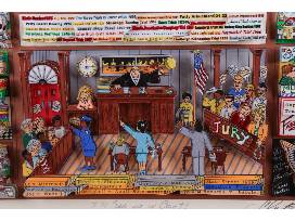 Since developing his distinctive 3D art technique 50 years ago, Charles Fazzino's name has been synonymous with bright, whimsical, wonderful, and detailed 3D Pop Art. His work can be seen in hundreds of galleries and museums worldwide. Fazzino's limited edition artworks are silkscreen printed using a hand-stenciling printmaking process known as silkscreen serigraphy. Each image is printed multiple times on 100% rag museum board. All of the individual pieces are cut out by hand and assembled with a special silicone glue to give the illusion of up to five layers of art. The entire process consists of hundreds of pieces of museum board and paper drawn through a hand printing press an average of 20 times each. It takes 4-6 months to print a Charles Fazzino silkscreen edition of artwork. The title of this piece is "I'll See You In Court!" Measures 33 in. x 40.5 in.