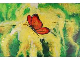 This hand-painted bourbon barrel head (21 in. diameter) from Delaney Marie Designs, our Community Engagement Coordinator Delaney Thomas, will brighten up your home with its vibrant green and yellow colors. The scene painted depicts a monarch butterfly on a goldenrod.