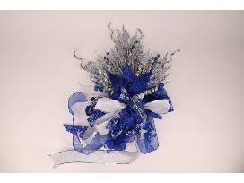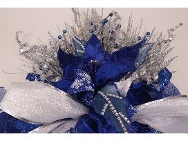 Enjoy this handmade royal blue and silver Christmas Tree topper from PJs Distinctive Gifts that is adorned with glitter. It is sure to add some sparkle to any tree.