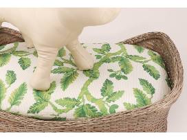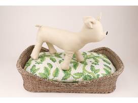 Your pup is going to love getting cozy in this small decorative dog bed from Isabel Ladd Interiors. This 29 in. x 17 in. bed is styled with a green botanical pattern and lays within a light brown basket-woven exterior. It is sure to become your dog's new favorite napping spot! *Stuffed dog included.