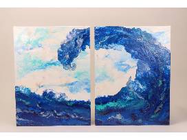 0Angela started her AMT Paintings LLC in 2021. She learned to paint from her grandmothers, each of whom specialized in different media. Angela likes trying different techniques and media but specializes in acrylics. She does landscapes and abstract work. Some of her work is made with fluid acrylics utilizing different techniques. She loves anything that reminds her of the ocean or being in nature. This two-panel water wave painting includes two canvases measuring 18 in. x 24 in. You can find her at Bluegrass Creative Market a few times a year, and she also has some work at High on Art and Coffee in Lexington. She does custom work as well.