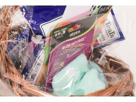 Treat your feet with this Sole Solutions gift basket from Solar Bodies! Included are Dr. Teal's Foot Cream (8 oz.), Dr. Teal's Gentle Exfoliant (6 oz.), Dr. Teal's Pure Epsom Salt with cooling peppermint (2 lb.), an aloe vera foot peel with peach extract, Aloe Infused Socks (women's size 5-11), a blue pumice stone, and a certificate for one Sole Solutions Foot & Calf Treatment at Solar Bodies, located in Lexington. Certificate expires 12/31/24.