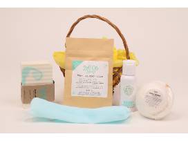 This gift bag from Buff City Soap comes with a blue loofah, a 5.5 oz. bar of soap made with shea butter in the "Narcissist" scent, mini shower oil in the "Narcissist" scent (1.75 fl. oz.), laundry soap in the "Magnolia" scent (1.5 oz.), and a 6.6 oz. bath bomb in the "Narcissist" scent.