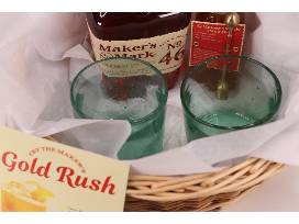 Try The Maker's Gold Rush cocktail with this gift basket from Maker's Mark Distillery! Included is a 750 mL bottle of Maker's Mark French Oaked No. 46 Kentucky Straight bourbon, an 8 oz. bottle of Lavender Honey from Honey Bear Farms in Louisville, and two glass-blown bourbon glasses. You also will receive the recipe for The Maker's Gold Rush!
