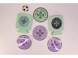 Racing Louisville Football Club is a National Women's Soccer League team based in Louisville, Kentucky. Established in 2021, Racing Louisville made its city home to a major-league sports franchise for the first time in 41 years! Included in this gift basket are two purple Racing Louisville FC branded stickers (4 in. diameter), one green and one purple branded magnet (4 in. diameter), two green branded koozies, two temporary tattoos with a soccer ball design, one green and one black t-shirt (both size XL), and a voucher for four complimentary general admission Supporter Zone tickets to any Racing Louisville FC 2024 regular season home match at Lynn Family Stadium.