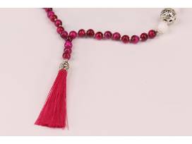 This beautiful Mala Necklace is made of rose tiger's eye beads and howlite accents. Mala Necklaces are often used as meditation tools. This necklace symbolizes and will help you set intentions of confidence, communication, luck, prosperity, patience, perspective, and emotional regulation.