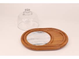 This vintage Teakwood Oval Cheese Server with Dome and Marble Tile will be a beautiful addition to any home and a great hostess gift! The oval board measures 11.75 in. x 9 in., the tile is 6 in. diameter, and the dome is 6 in. diameter as well.