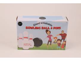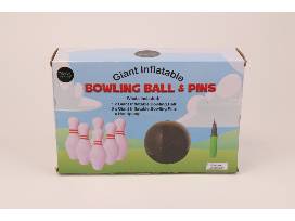 Get pumped up for inflatable bowling! This kit includes one giant bowling ball, six giant bowling pins, and one hand pump.