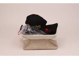 This gift basket from Red Mile includes a black Caesars Sportsbook baseball cap, a red Red Mile beanie, a black Red Mile beanie, a black Red Mile water bottle, and a deck of Red Mile playing cards. Also included are a $100 free-play voucher and a $50 dining credit at Frankie's Bar & Grill. Expires 6/30/24.