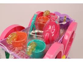 You are cordially invited to a princess tea party! Enjoy tea time in elegant style with the Kid Connection tea cart play set. This multi-piece play set includes a teapot and a push-cart that lights up and plays sounds. The set has everything your child needs for the perfect tea party: a double dessert tray with eight desserts, four sets of cups and saucers, utensils, plates, and more. Your kids will have fun setting up the party, serving tea and elegant snacks, and socializing with family, friends, stuffed animals, and dolls. The tea pot lights up and makes whistling sounds. Also included is a princess dress-up box, so you can don your princess slippers and a tiara to drink your tea. Perfect for princess-loving kids ages two plus. Made from plastic. Requires batteries. Batteries are not included. This would also make a great birthday gift!