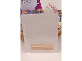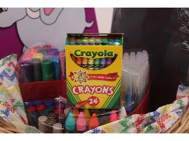 This basket includes a variety of art supplies to spark creativity and provide hours of activity. Included are a Vanker desktop tidy, a set of 24 crayons, two 40-sheet pads of watercolor and marker paper, a set of six Magic Stix, and rainbow scratch paper.