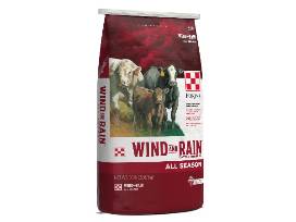 Purina's Wind and Rain All Season Minerals are available as a comprehensive line of beef cattle minerals designed to address the mineral deficiencies of the available forage, in a palatable, weather-resistant, granular formula. Wind and Rain Storm cattle minerals' large particle size and special formulation keeps the mineral from absorbing water and blowing out of the feeder. The Storm technology provides the ultimate in weather resistance to reduce waste and makes Wind and Rain Storm Formula more economical to feed than conventional loose minerals.