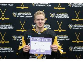 Bid to win this Hockey Fights Cancer 'I Fight For' Card, autographed by Jake Guentzel with the inscription 'A Cure'.