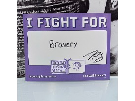 Bid to win this Hockey Fights Cancer 'I Fight For' Card, autographed by P.O Joseph with the inscription 'Bravery'.