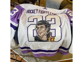 Bid to win this one-of-a-kind jersey Hockey Fights Cancer jersey, painted by cancer warrior Larry Klu!