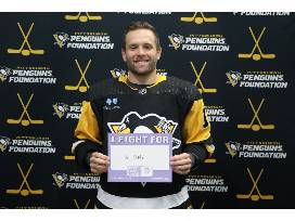 Bid to win this Hockey Fights Cancer 'I Fight For' Card, autographed by Bryan Rust with the inscription 'A Cure'.