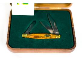 Ducks Unlimited special edition series pocket knife 2000 by Schrade. Contains all paperwork. Wooden box and wooden knife handles.