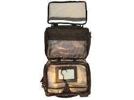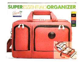 Ricardo Beverly Hills hanging travel organizer bag. Black. 15" x 10" x 5". Multiple pouches etc. to organize toiletries inside and two gusseted front pockets.