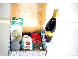 Relax with a Scentsy Bitty Buddy, 3 packages of wax cubes and a 3D scent circle plus a bottle of wine.