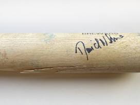 Rawlings Adirondack ash baseball bat autographed by Dave Nilsson. Note, slight damage to bat (see second photo).