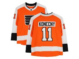 - One (1) Travis Konecny Philadelphia Flyers autographed orange Fanatics breakaway jersey