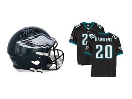 - One (1) Brian Dawkins autographed Riddell speed authentic helmet with "HOF 18" Inscription
