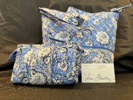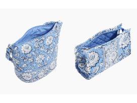 Carry items in style with a Vera Bradley crossbody bag and a matching cosmetic bag in Sweet Garden Blue.
